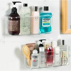 BOED Toothbrush Holder,Toothbrush Caddy With Compartment,Shower Caddy,Bathroom Storage,Wall Mounted Adhesive Storage For Bathroom,Kitchen No Drilling,Clear Plastic
