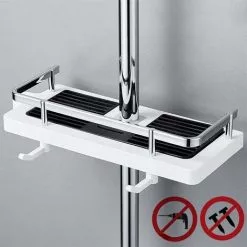 BOED Bathroom Shower Rack,2-in-1 Liftable Shower Rack No Drilling Adhesive Storage Shelf Organizer Holder Punch-free Multi-function Storage Rack For Bathroom And Kitchen ( White)