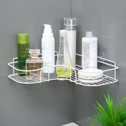 EINEMGELD Shower Organizer Storage, Bathroom Shelves, Trolley With Adhesive Sticker Rustproof Stainless Steel Kitchen And Bathroom – Adhesive Sticker Included (White)