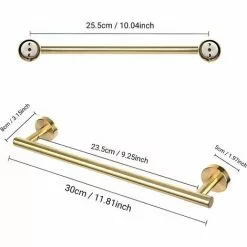 MIRLEY-UK Towel Rack With Drilling, 304 Stainless Steel Towel Rack, Bath Towel Rack Brushed Nickel Towel Holder For Bathroom, Kitchen, Gold, 30cm