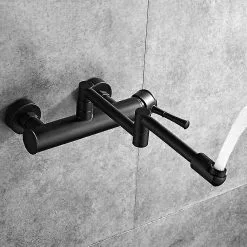 Unbranded Fong Wall-mounted Kitchen Faucet, Folding Telescopic, Black Wall-mounted Faucet, Brass Wall-mounted Faucet, Wall-mounted Mixer, Ceramic, Kitchen Sink,