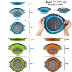 Unbranded Kitchen Foldable Colander, Foldable Silicone Colander, Round Foldable Colander 3 Pieces, Space Savin