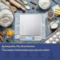 Unbranded Digital Kitchen Scale Usb Rechargeable 3kg/0.1g Digital Baking Food Scale, Precision Electronic Scale Stainless Steel Weighing Table Tops, Tare Functi