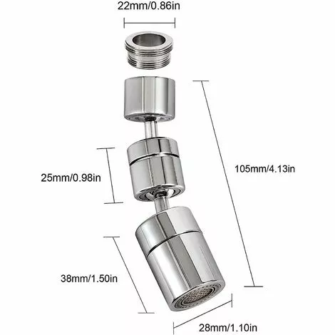 avoid all leaks. - 【1080 ° Rotation】 The unique 3-section swivel faucet aerator design allows itself to be rotated at any angle of 1080 degrees, which allows the water jet to reach every corner of the sink or sink and facilitates to the maximum