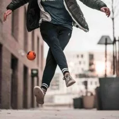 The ball weighs 120 grams and has a soft grip. It has medium bounce and is excellent for throwing, kicking, and performing tricks with.