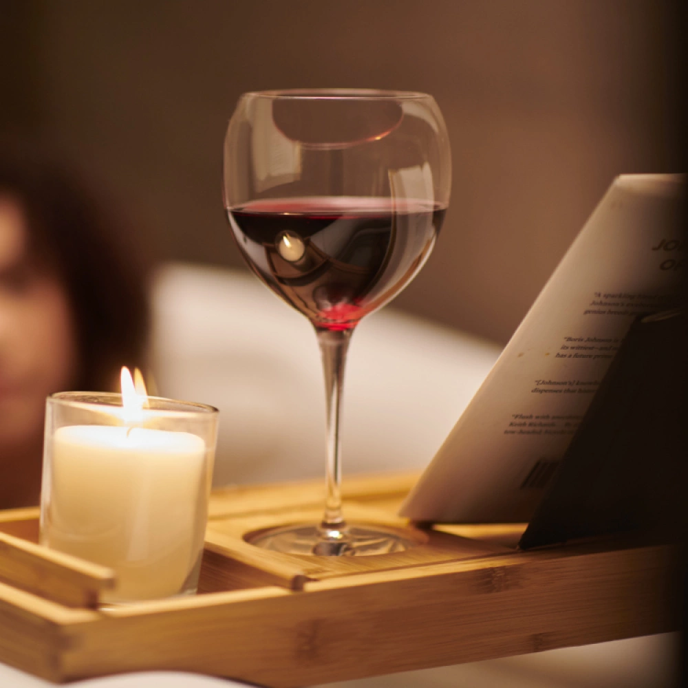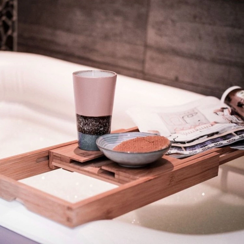 Relax after a long day or enjoy a quiet Sunday breakfast in the bath with Tubble’s luxurious bath shelf. The pull-out bath tray has several smart shelves and holders so you can lie back in the bath and read, or watch a film with snacks and drinks easily reachable.