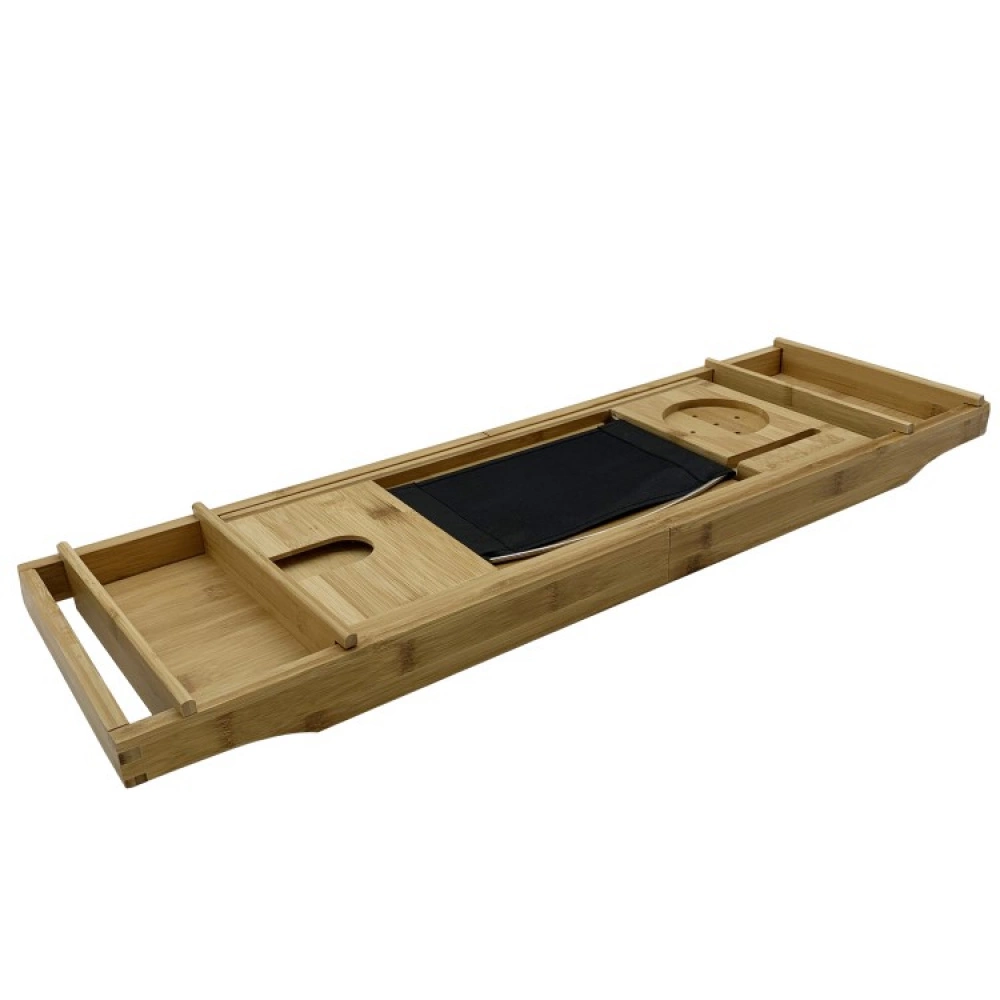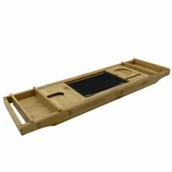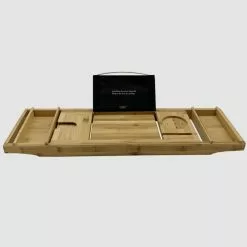 The bath shelf is made of water-resistant and high-quality bamboo with a thin layer of waterproof varnish.