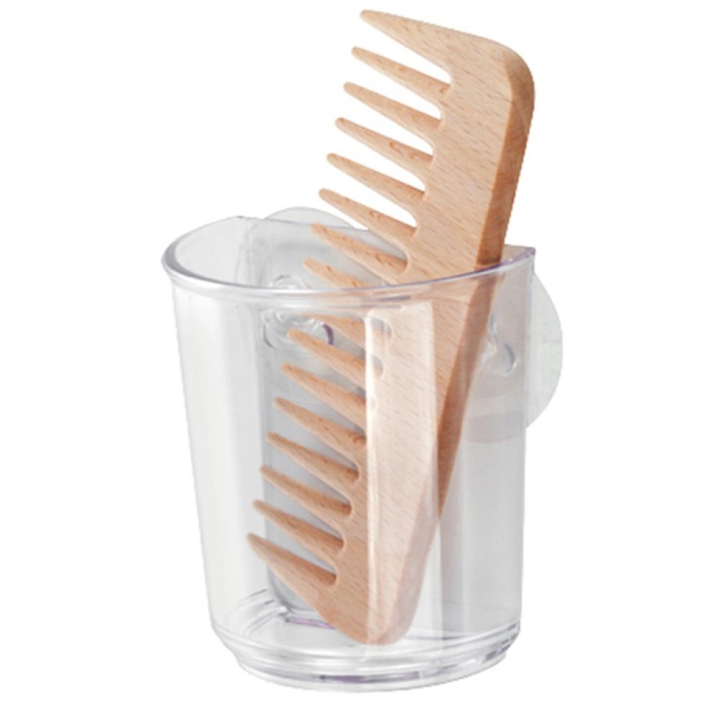 Store your toothbrush, razor or comb in a clever little bathroom cup on the wall. The bathroom cup is attached to the wall with strong suction cups and is perfect to have as a wall cup in the shower or as a bathroom cup next to the sink.