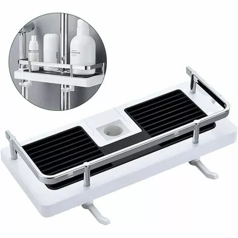 - âšăHigh quality ABS materială The upgraded elevatable tray frame is made of ABS material, which has better moisture resistance, and is suitable for wet environments and durable. The hollow design makes the drainage more convenient, makes the shower supplies dry quickly, and keeps the shower area clean and sanitary.