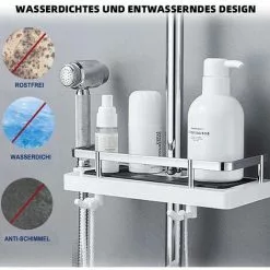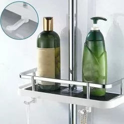 - đ„ăAdjustable heightă The height of the hanging shower stand can be adjusted according to personal requirements. It has an aluminum 90 degree arc fence to avoid unnecessary scratches at square corners and prevent objects from falling off.