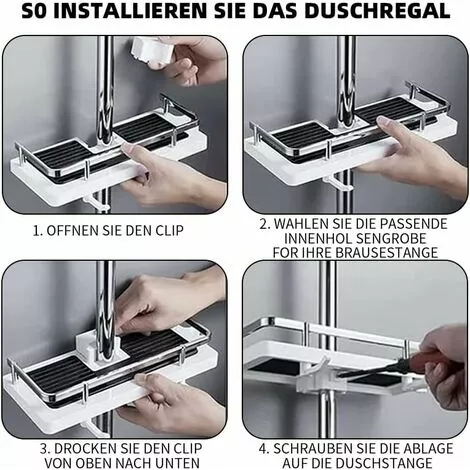 - đăEasy to installă The buckle design makes it easy to install in a few minutes without drilling or disassembling. Peel off the self-adhesive cover, and then place the hook on a smooth surface. Suitable for shower poles with a diameter of 23-25mm.