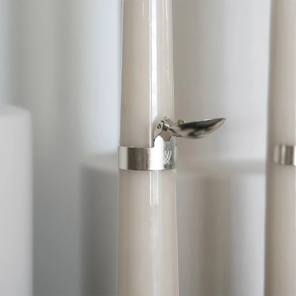The candle snuffer Vekvaka is made of stainless steel and comes in two colours.