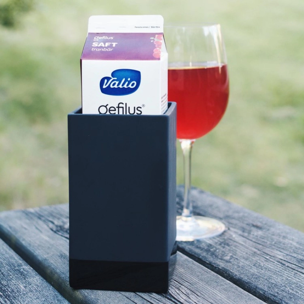 The Tetra Pak cooler holds tetra packs of 1 liter with milk, juice, and yoghurt. You can also write on the cooler with chalk to add a personal touch.