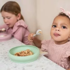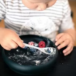 The children’s plates from Norwegian Naomi are sturdy silicone plates with a high rim that make it easier for children to eat on their own. The bowl-shaped plate’s inwardly curved edges help the child get the food onto the spoon and give a lovely feeling of being able to do it themselves.