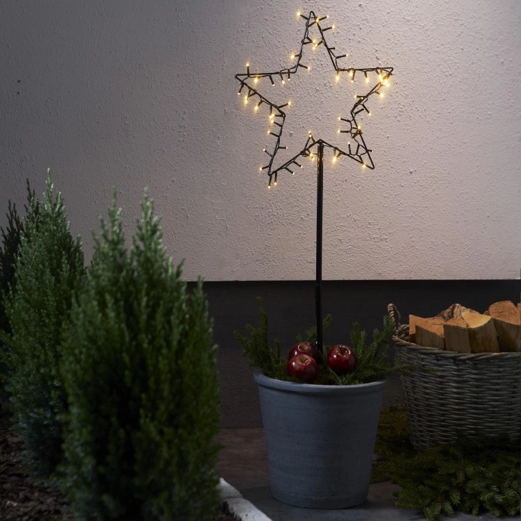 Decorate your garden and balcony with an atmospheric Christmas light that you put in the ground or in a large pot. The Christmas decoration is available with different Christmas motifs and has a battery-operated light with timer function that illuminates the motif with a soft, warm, white glow.