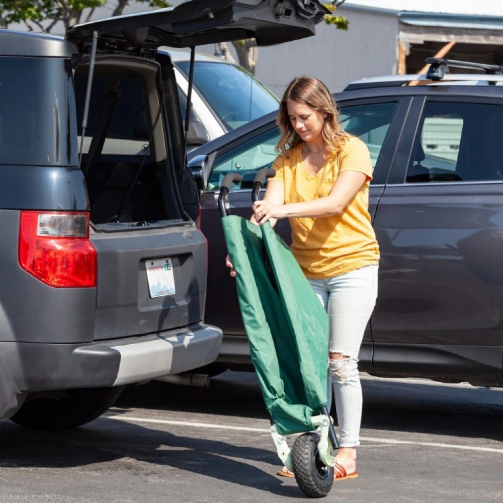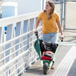 The collapsible design means that the wheelbarrow can also be folded up when you’re not using it. It can save you space in the garage and storage and may also fit in larger cars.