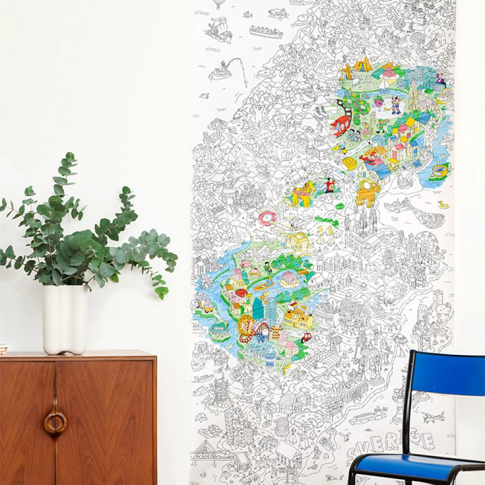 Colour the poster in on the floor, the table or the wall. The poster measures 180 cm x 100 cm and is made of thick paper that you can colour in with felt tips, coloured pencils or crayons. Pick your favourite from a range of designs and themes!