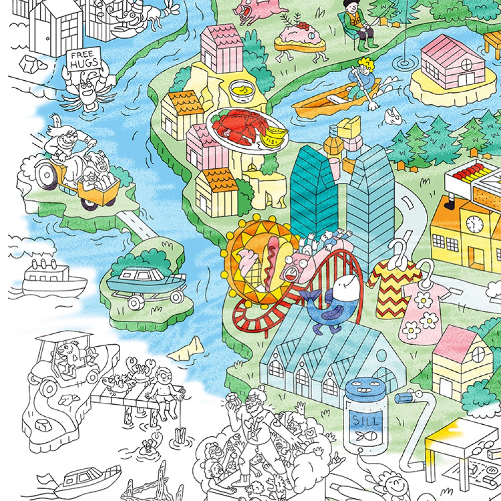 The poster features lots of fun characters with loads of exciting details to discover as you colour. Fun for children and adults!