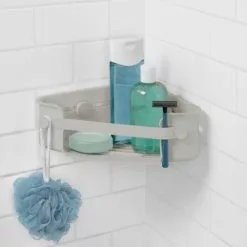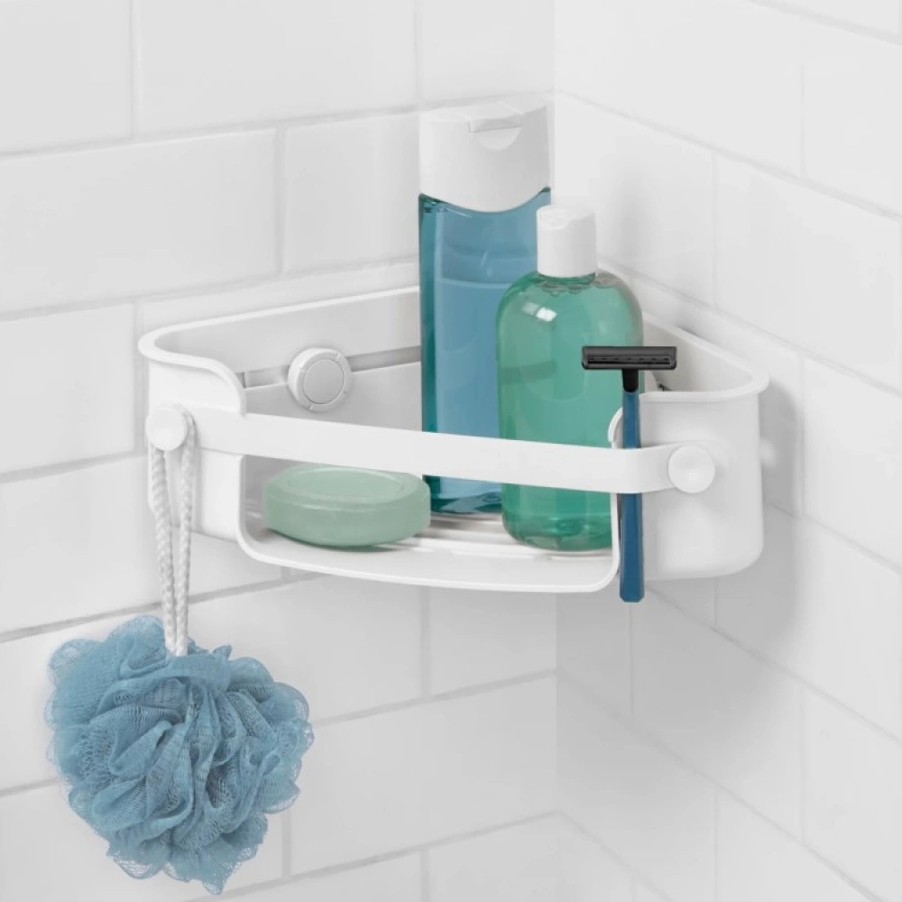 Umbra’s corner shelf with suction cup attachment is a smart way to use the often unused corner space in the shower and bathroom. With the shower shelf, you can have your shower things close at hand in the shower, while saving space and not having them standing on the bathroom floor.