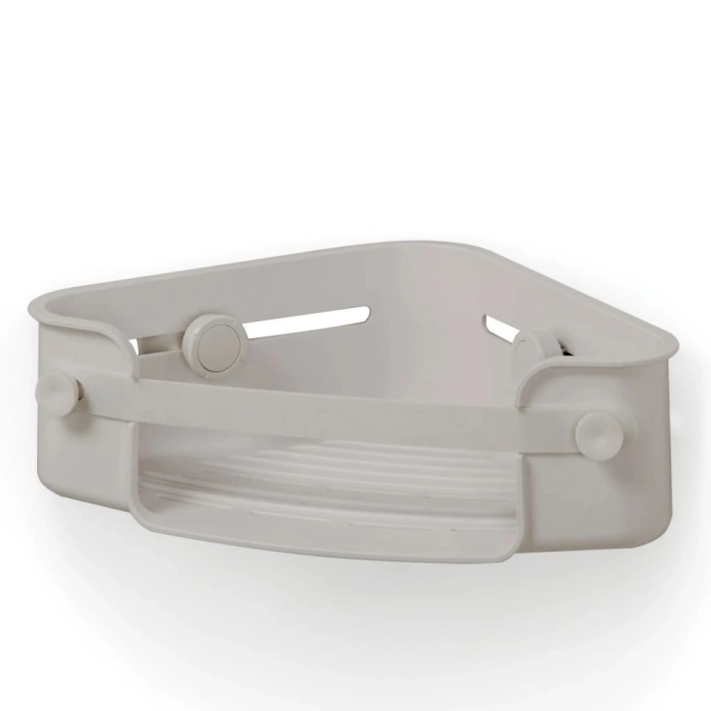 With the shower shelf you get better and smarter storage in the bathroom. You have plenty of space to put shampoo, conditioner and shower cream on the wide corner shelf. There’s also an integrated soap dish, a razor holder and two hooks for hanging sponges and towels. The corner shelf is made of durable plastic and has drainage holes at the bottom for water to run through.