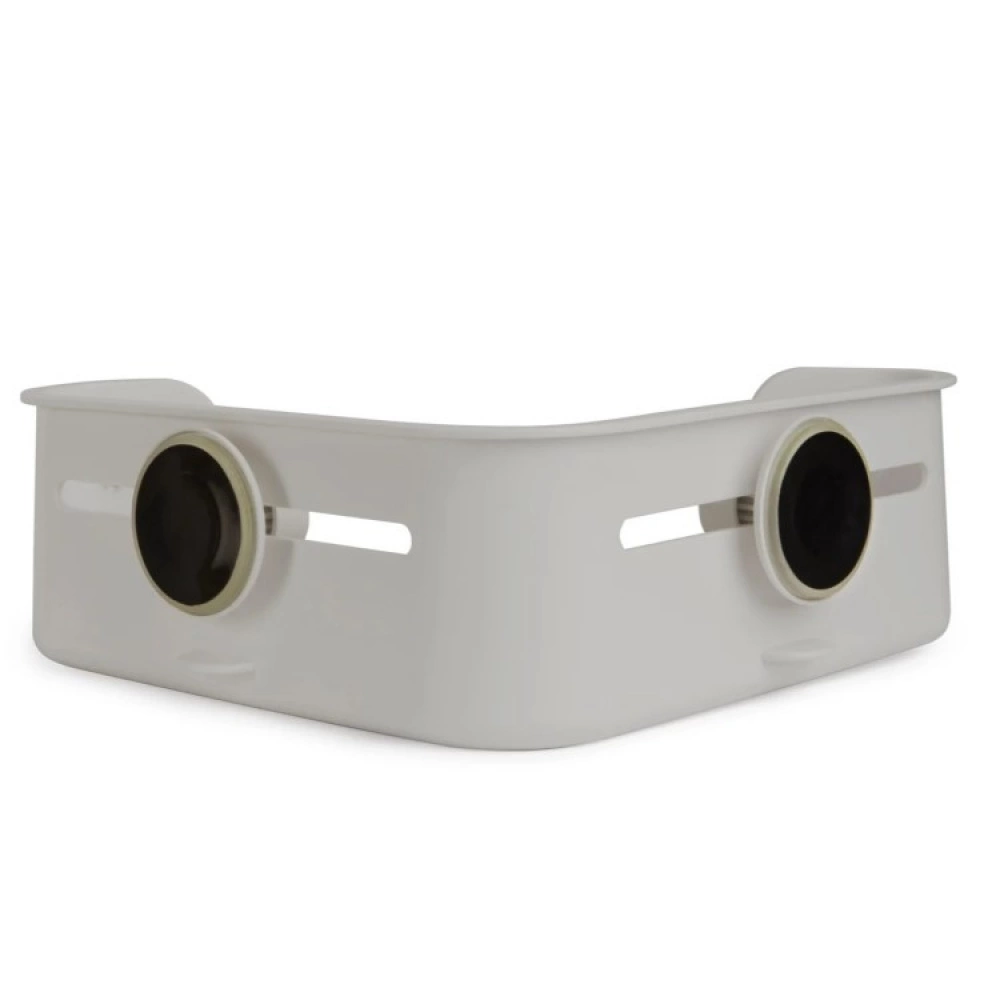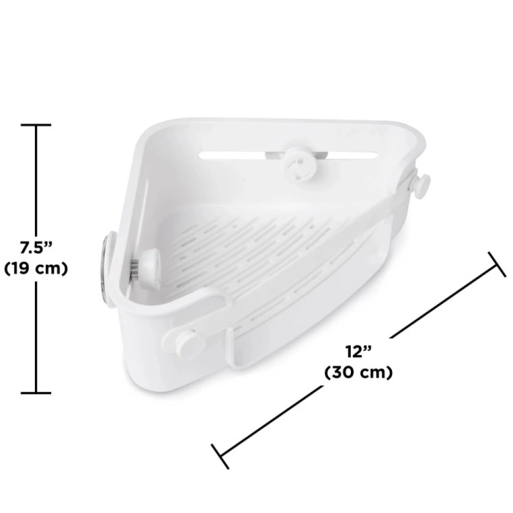 The sturdy corner shelf has two large suction cups and a patented Gel Lock lock that holds the shelf against the wall. The patented Gel Lock creates a vacuum between the suction cups and the wall, ensuring that the suction cups do not come loose in the first place. The suction plugs can also be adjusted laterally so that they sit in the middle of the tile and not over a joint that could destroy the vacuum.