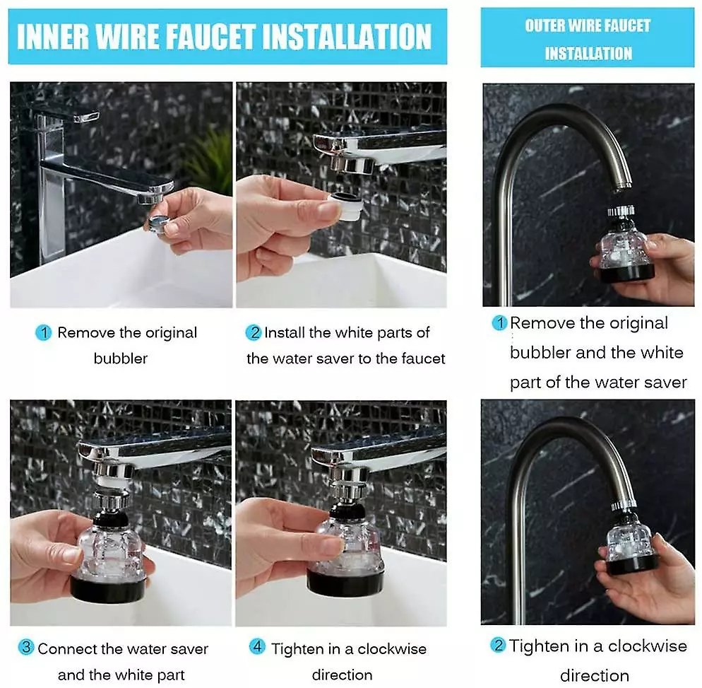360 Degree Rotation: The faucet aerator has a 360 degree rotation function. Therefore, you can easily clean the blind spots of the sink without splashing water.
