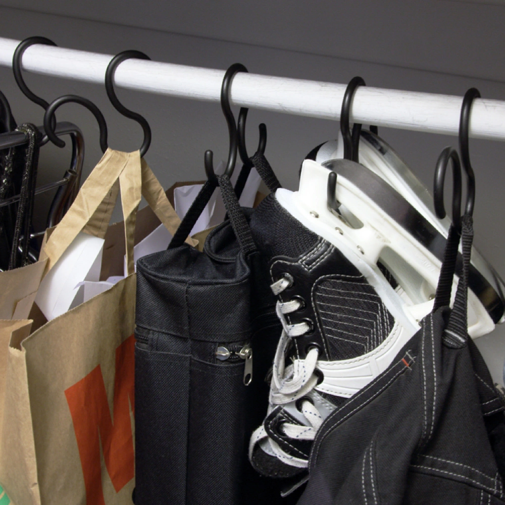 A smartly designed shape enables you to hang the Swedhook nearly anywhere: from strollers, hat racks, door handles, ovens, clothes lines, tables, and much much more. The Swedhook comes as a pack of three and is available in either black or white.
