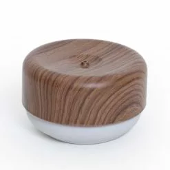 DThe ice medium container is made of transparent plastic and has a light grey silicone cover that ensures the pump stands firmly on the sink. The screw cap is made of plastic and is available in a dark or light wood pattern.