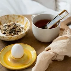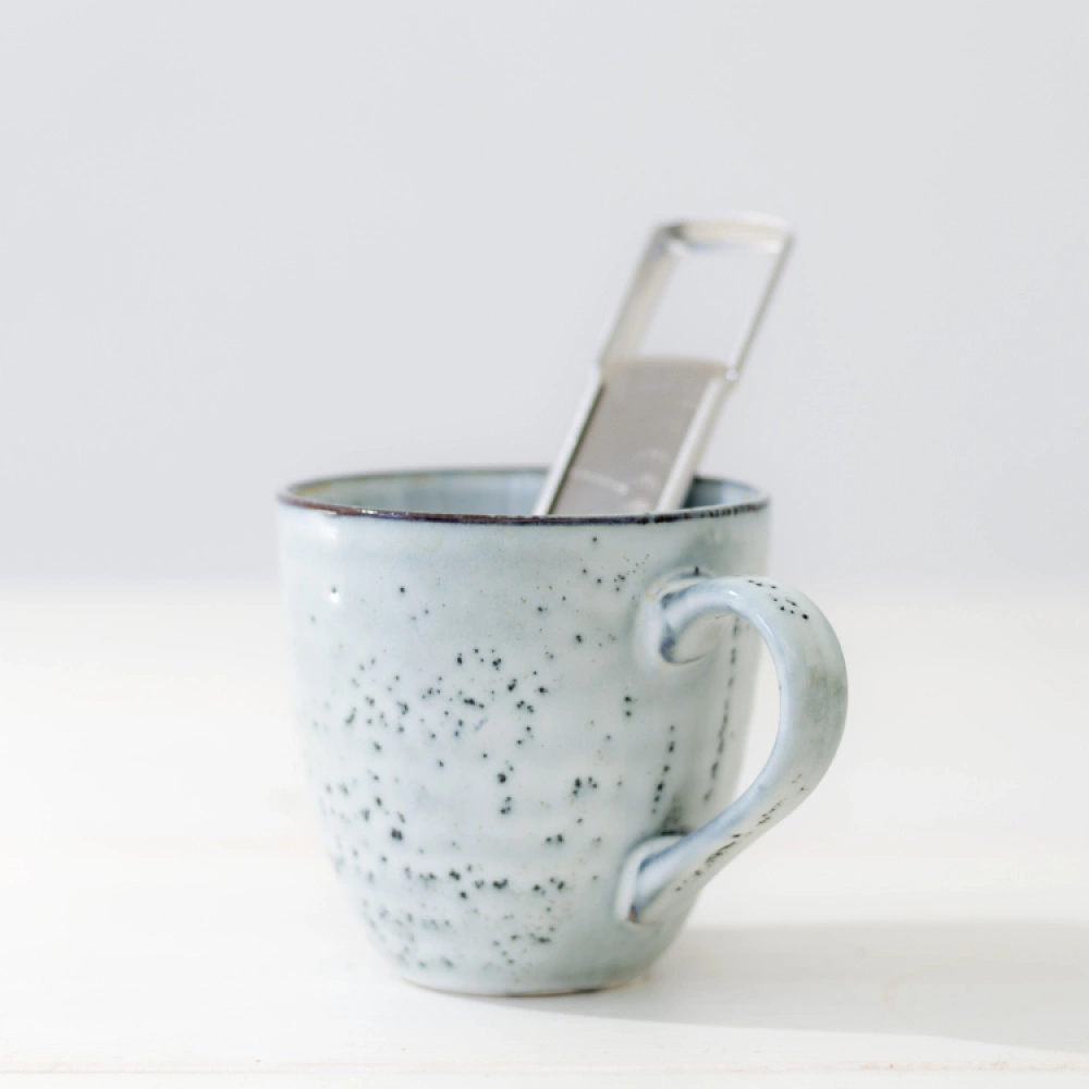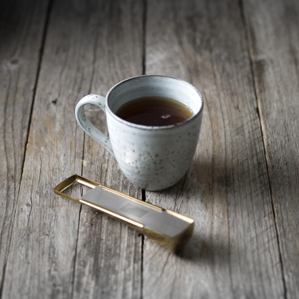 When your tea has finished brewing, strain the water towards the edge of the cup. Then you can place the tea strainer on a mat or directly on the table. The spoon itself is unperforated, so there is minimal dripping.