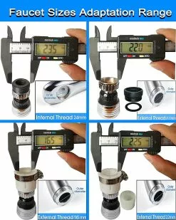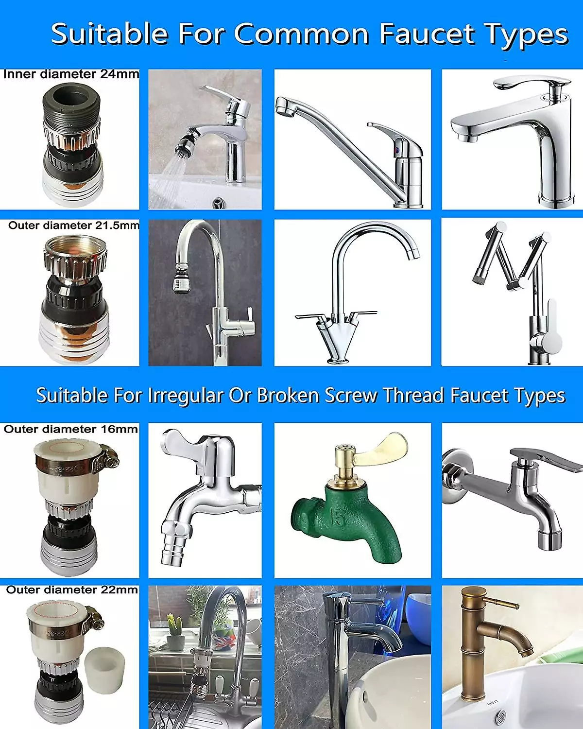 360ROTATION – Kitchen aerator with 360swivel ball head to adjust, help you easily clean any corner of the sink and easily to wash and clean plates, pan, pots, fruit etc. Suitable for faucet with inner diameter 21.5-24mm, or outer diameter 20-22mm. If the caliber of your faucet is not in this range, then you can use the converter inside the accessory.