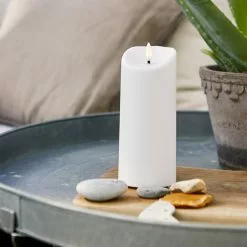 This flickering pillar candle has a clever timer that automatically turns the candle on at the same time every day. The flickering candle is waterproof and can be used outdoors. It looks great in a lantern on the balcony or in the garden.
