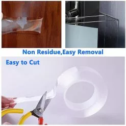 2.WASHABLE AND REUSABLEMuti-functional adhesive tape is washable. When it gets dirty, you can wash it with water and dry it to regain its stickiness. It will become sticky again after being dry. DO NOT use any other wipes or detergent. The tape will probably can’t stick still if the it gets wet, please keep it dry when holding the object. And it can be used for many times, and will not leave any residue or glue when removed.