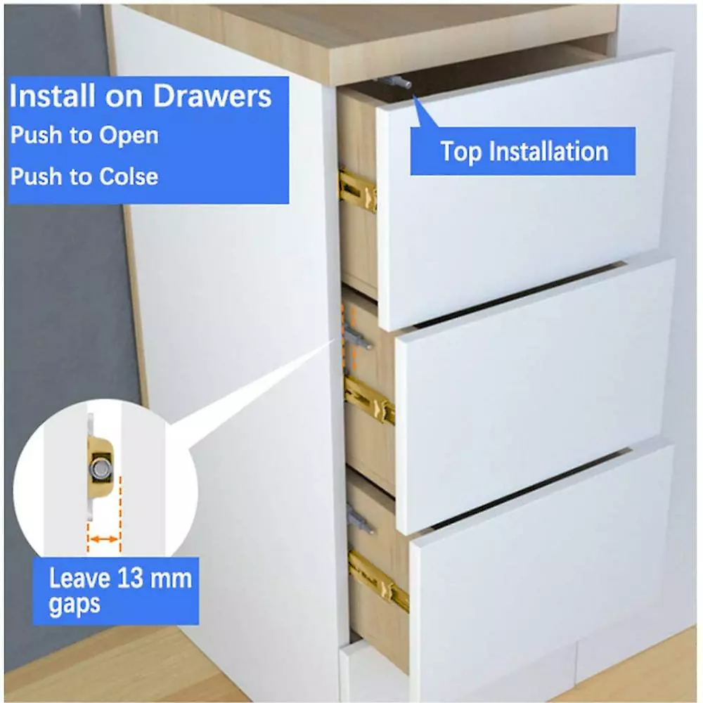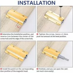3.Powerful Piston/Spring: Larger and thicker heavy-duty spring mechanism has a strong enough tension make this push opener an exceptionally durable and timeless choice. Ensure lifetime up to 20000 times.