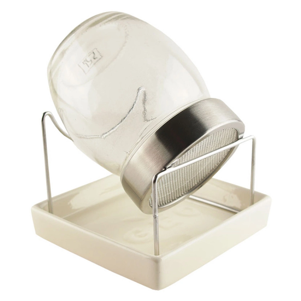 The glass sprouting jar holds 8 dl and comes with both a strainer lid and a base plate in ceramic. The glass sprouting jar should be stored at room temperature (preferably 18-23 °C), and should not be stored in direct sunlight or close to any warm source when the sprouts are sprouting. When the sprouts are all grown, you can place the jar in the fridge and they will stay good to eat for about a week.