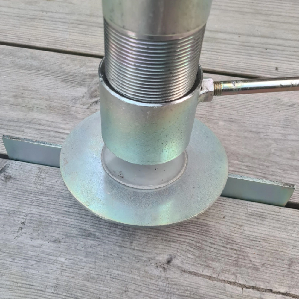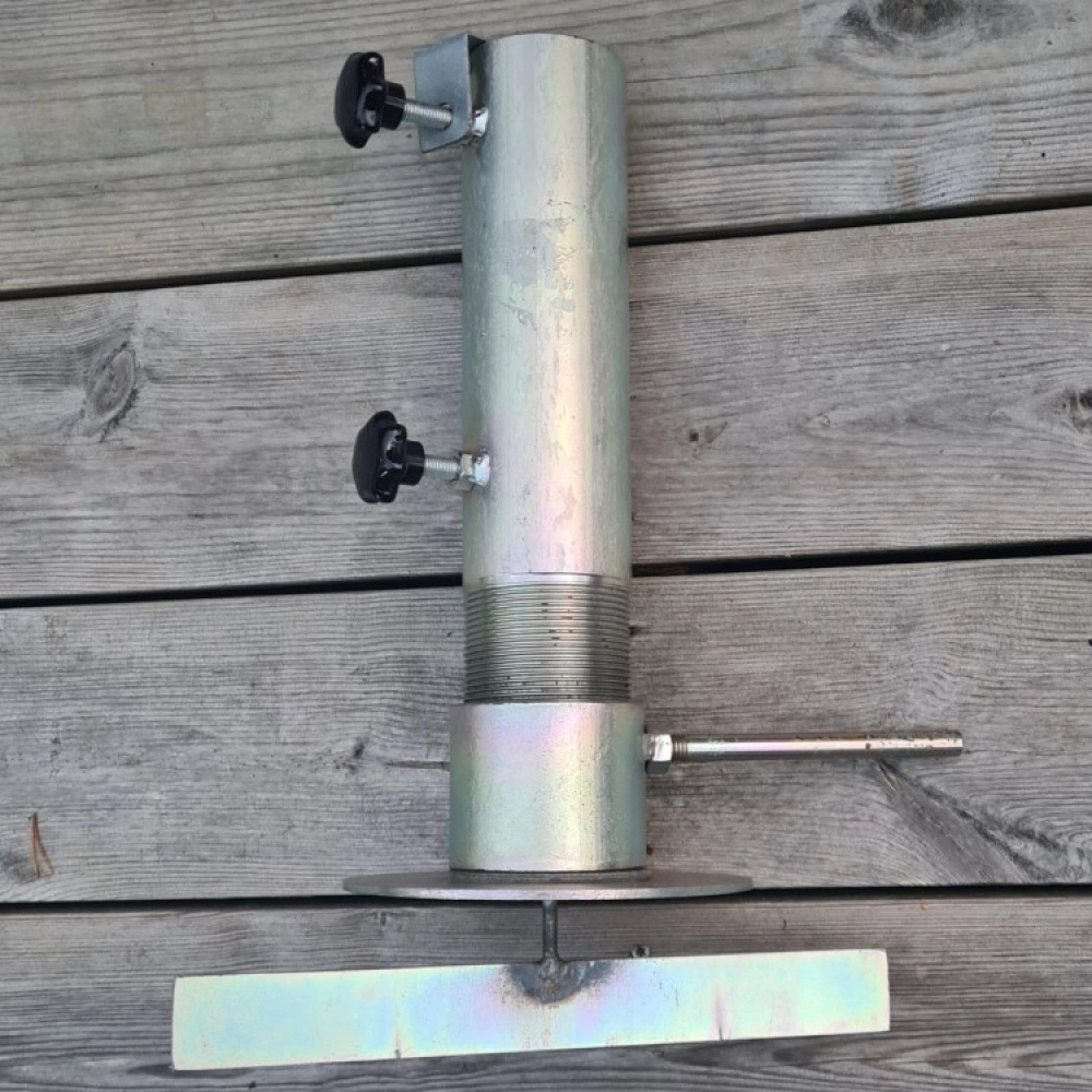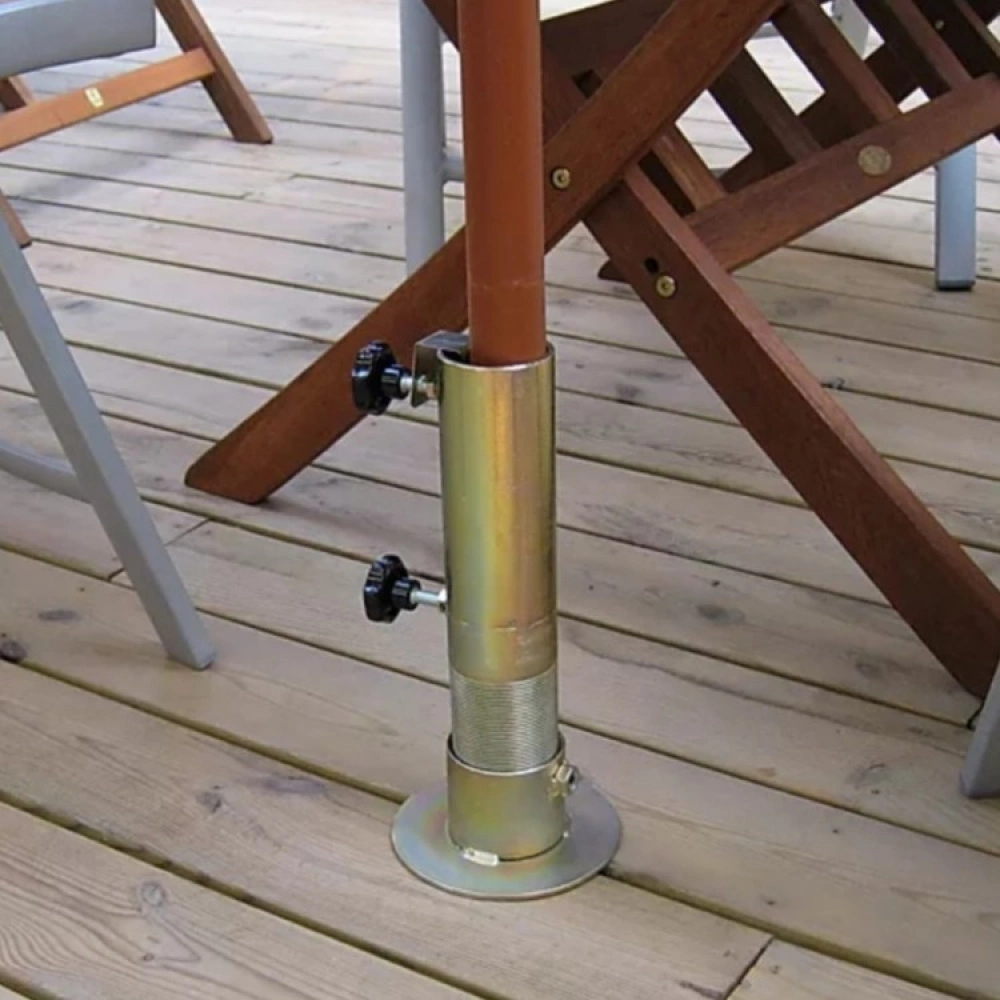 The parasol base is easy to mount on a wooden deck and is very stable after it’s been screwed into place. The small base sticking up takes up little space at the table and you don’t have to roll heavy parasol bases around if you must move the parasol. Just unscrew it and you can take it down to the dock, for example.