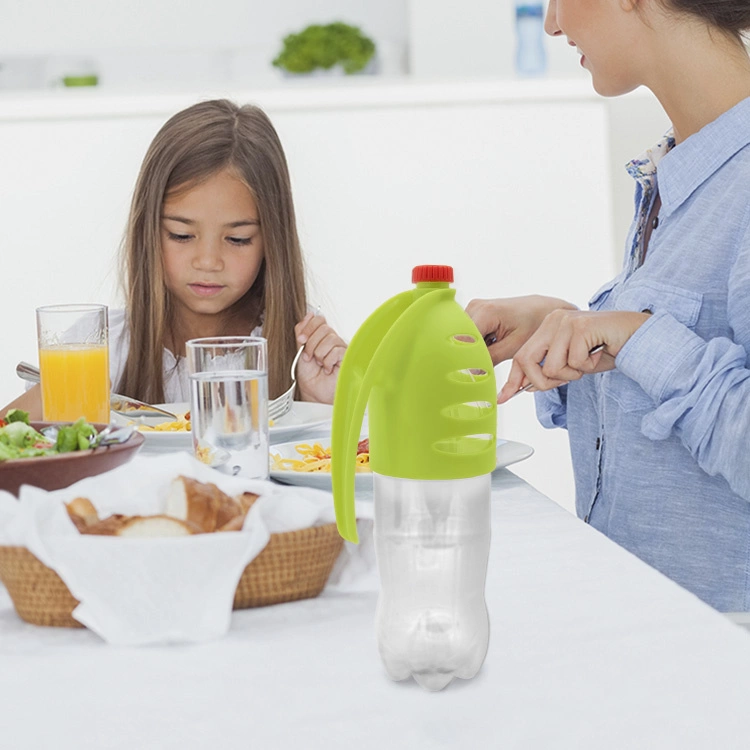 The good sized handle allows you to easily hold the bottle, making it easy to pour out drinks into small glasses without spilling anything. The bottle holder has threads on the outside that let youconnect the plastic bottle with the screw top on the grip holder. Stargrip stays on the bottle as long as you want to use it.