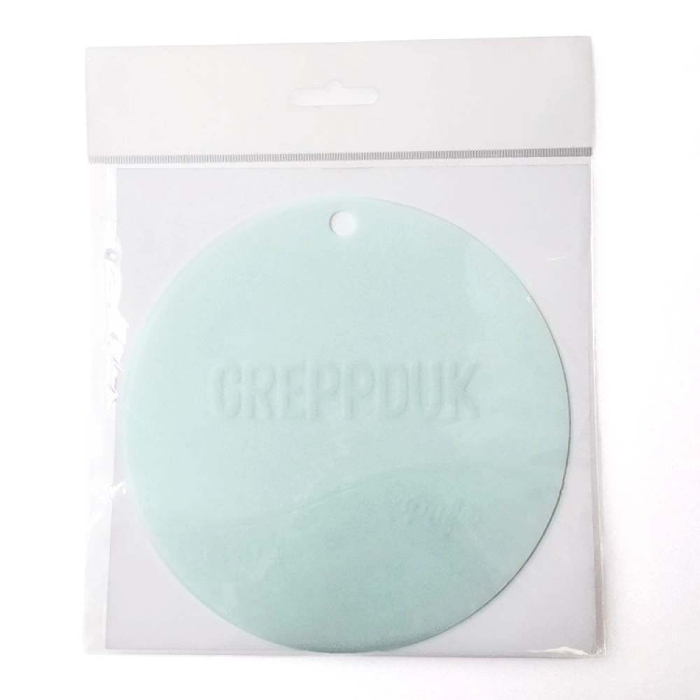 The grip pad is made of 100% silicone and can be washed in the dishwasher, put in the freezer and withstand heat up to 230° C. Use the grip pad as a hot pad, anti scald pad or microwave splash cover.This grip pad is 16 cm in diameter and weighs around 30 grams.