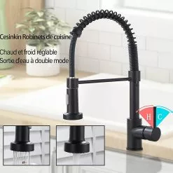 Features: 2 water outlet modes: water jet replenishment, water jet rinse, just press one button, the water dispenser can switch from water spray mode to shower mode, so that food or the dishes it can be washed conveniently. With pipes and other accessories, the installation is quick and convenient. If you have any installation problems, please contact us. Matte black surface, unique coil spring shape, more suitable for your modern kitchen, stain resistant and easy to clean. Made of brass and stainless steel, it is very strong and resistant to corrosion.