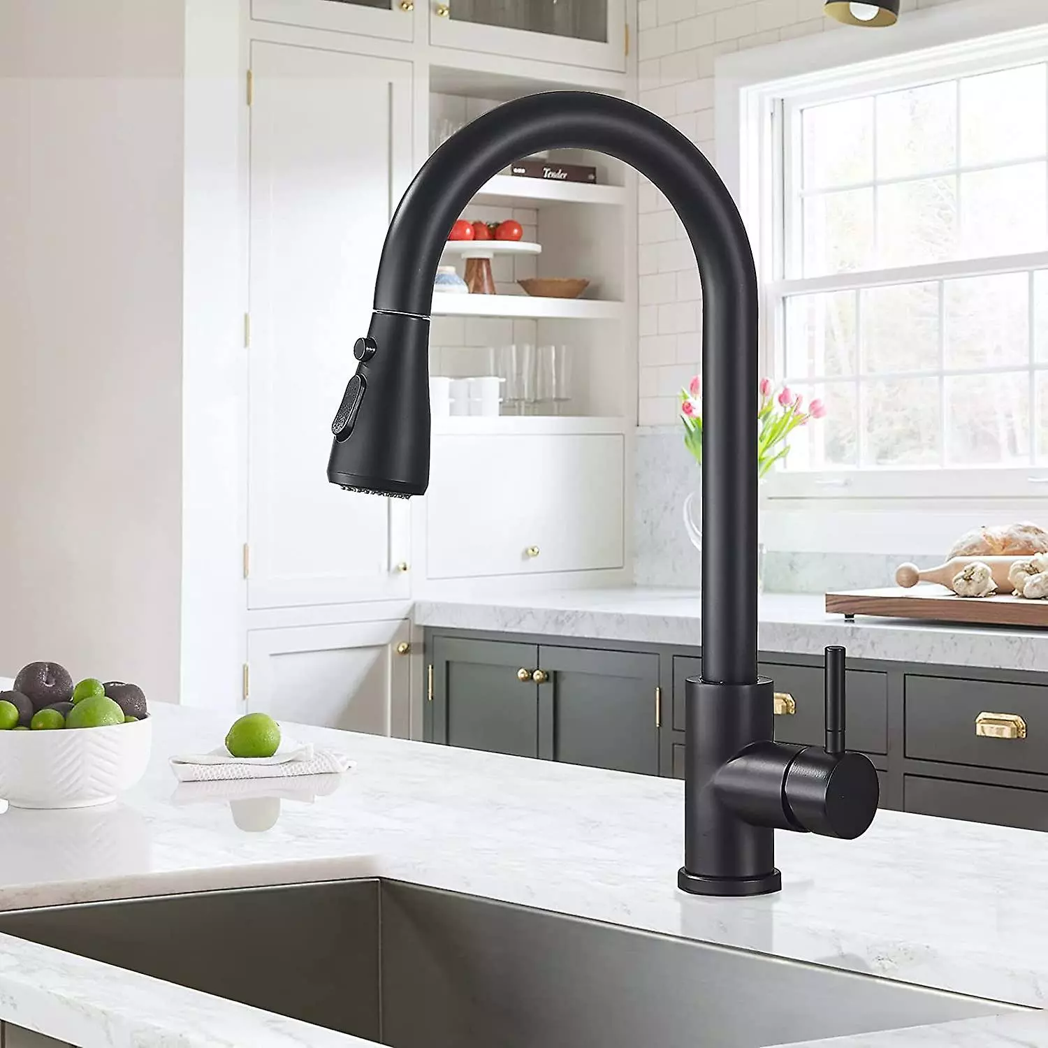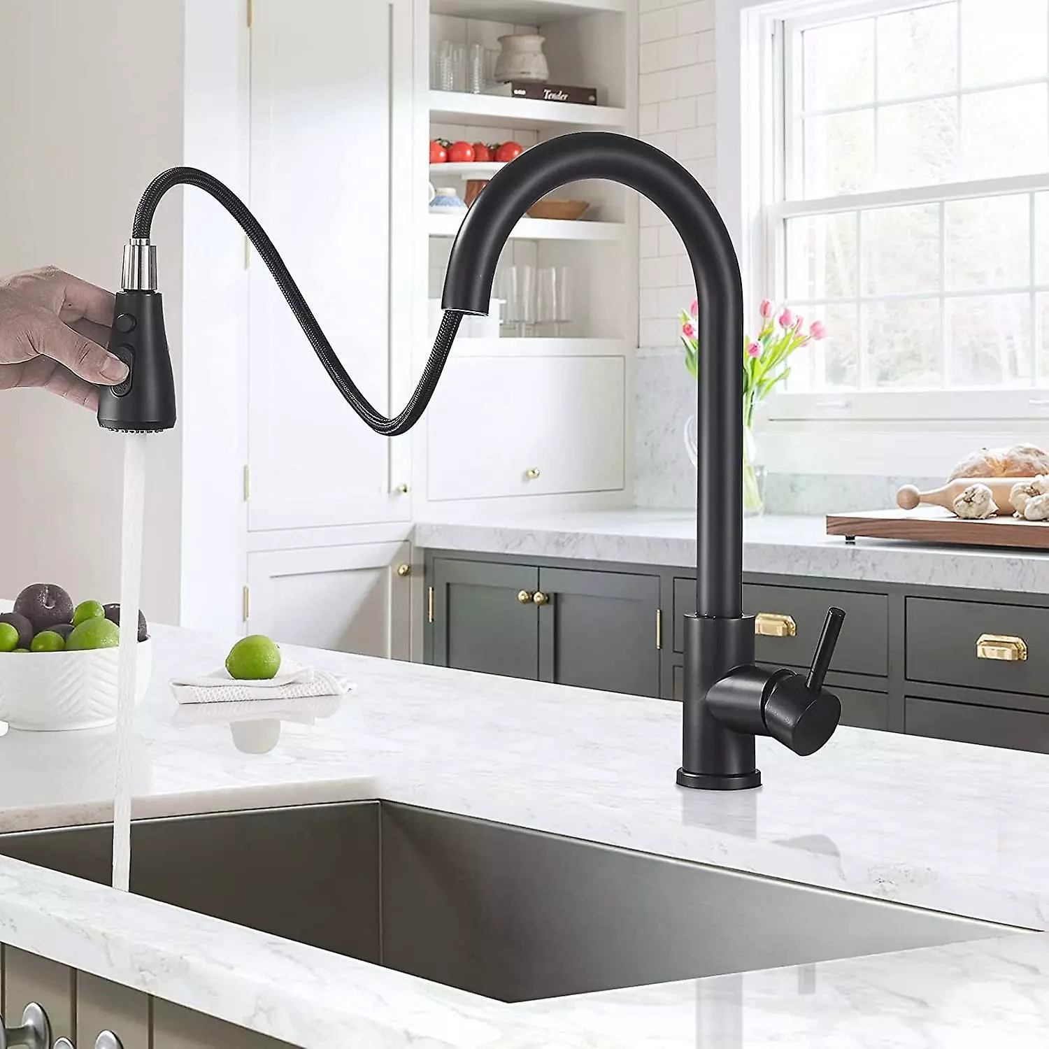 EASY TO USE: The pull-out, 360 swivel kitchen faucet is perfect for your single or double sink, easy to swivel to another bowl, then you can easily clean every corner of your sink.