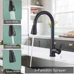 Function: Multi-functional kitchen hose faucet: running water, water spray, pause, 3 different water spray modes can be switched by the button on the water outlet, the water flow is for water filling, water jet is for rinsing, pause to prevent water. splashing, the single lever handle can be activated Switch between hot and cold water.