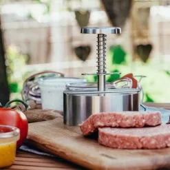 A hamburger press is an essential item to have when making your own hamburgers. By pressing the burgers with a hamburger press, the burgers will be the same size and take the same amount of time to cook. This results in juicy burgers whether you’re making grilled burgers, cheeseburgers, vegan burgers or vegan burgers.