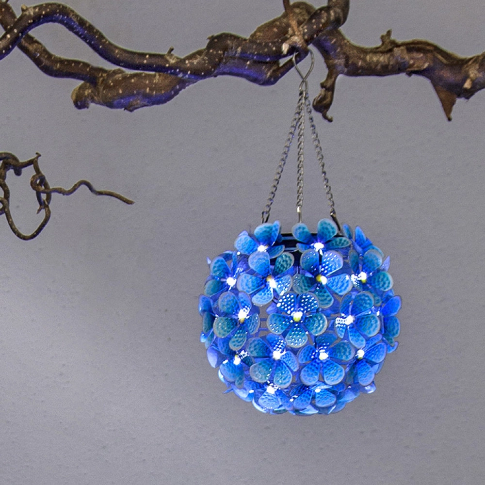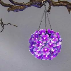 Decorate your garden, balcony or porch with this pretty flower that looks like a hydrangea and charges in the sun. The solar cell flower can easily be hung from a branch or a hook and automatically turns on as it gets dark.