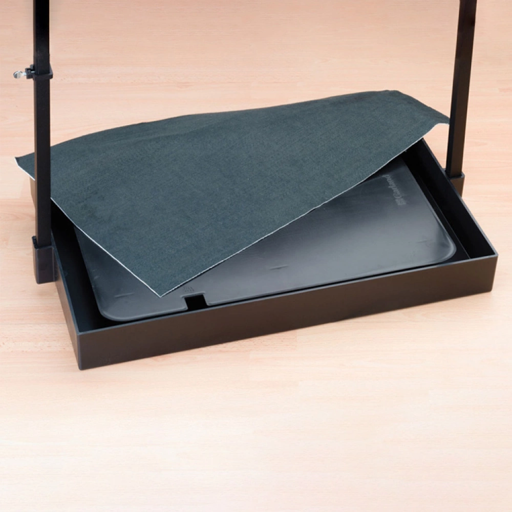 Simply fill the tray with water and position the irrigation mat. Make sure one end of the mat is submerged in the water, then place the four small boxes on the mat. The irrigation mat transfers the water from the trough, supplying the plants through small holes in the bottom of the boxes. The height of the grow lamp can also be easily adjusted with convenient wing nuts on the side. A practical shade ensures that 100% of the light is reflected onto the plants.