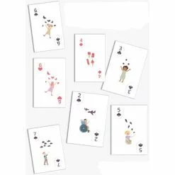 The deck of cards makes it fun for children to join in playing card games and solitaire. Each card has nice designs and symbols in the same colour as the number, making it easier for the child to count and see how much the card is worth. For example, the 2 has 2 planes, the 4 has 4 ice creams, the 7 has 7 clouds and so on.