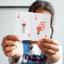 This deck of cards from ELSA and SAM is cleverly designed for children with educational symbols that match the numbers on each playing card. The deck contains 52 playing cards and 3 extra cards with mathematical symbols on the front and back, allowing the deck to be used for maths games as well.