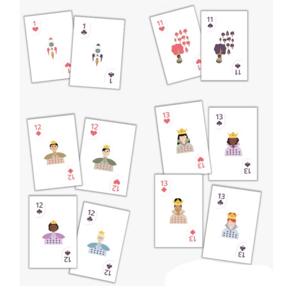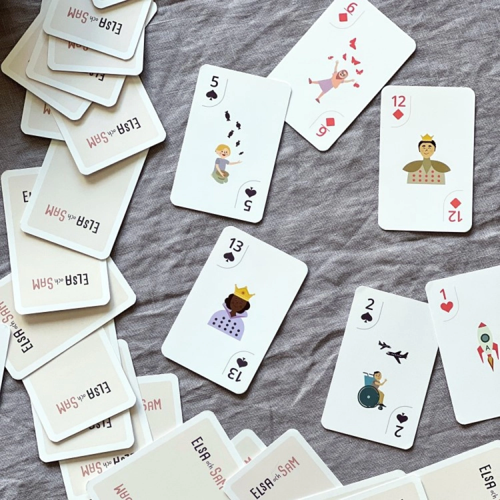 The deck is designed by the Swedish company ELSA and SAM. The idea behind the deck is to challenge norms and give children a broader perspective. In particular, diversity, in terms of functional variation, ethnicity and gender roles, has been a central idea when designing the deck. Equal value should be a natural part of a child’s environment. For example, the Queen has been depicted on card 13 and the King on card 12, because why should male characters always have to have the highest value?Â