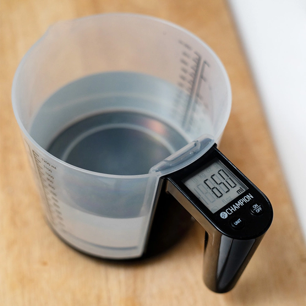 - Measures both weight and volume