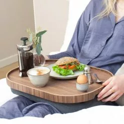 The knee tray has soft edge lines and is coated with a non-slip surface that prevents things from slipping when the tray is tilted. The fine wooden tray is made from exclusive walnut wood and each tray has its own unique colour and natural grain.