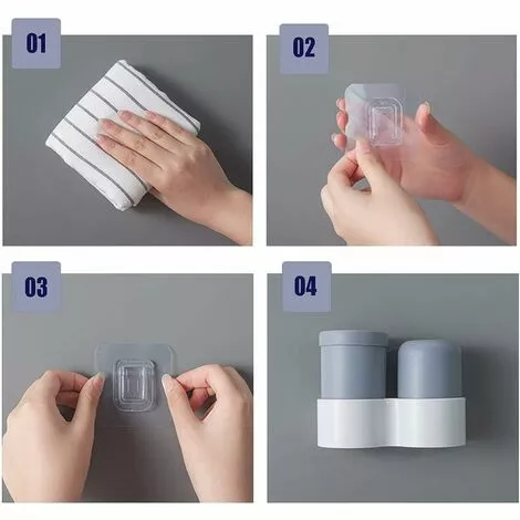 Remove the protective layer of tape from the hook and stick it to the smooth wall. Finally, hang up the toothbrush holder. - Wide Range of Uses: The toothbrush holder has a large capacity and can be used to store many items such as multiple toothpastes, toothbrushes, razors, makeup brushes, etc. It can be glued to the wall or directly on