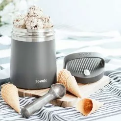 With its large capacity, the thermos can contain enough food or ice cream for a small group of people, and it has a large opening that makes it easy to scoop out the contents inside. The double walls on the thermos are vacuum insulated and maintains the cold or heat for a minimum of 4 hours, sometimes even longer, depending on the temperature outside.